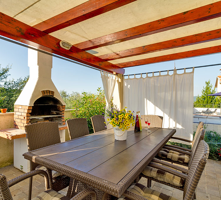 Grilled meal and some local wine served on outer terrace for relaxed summer evenings
